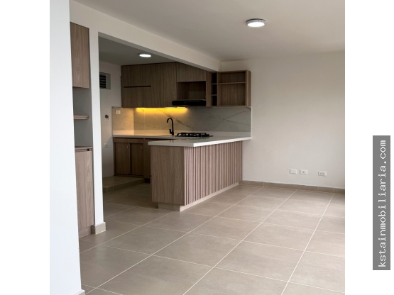 El Apartamento tiene un área de 54 mts aprox, distribuidos en  2 habitaciones, 2 baños, estudio, cocina integral, red de gas, calentador, sala comedor, balcón, zona de ropas y parqueadero solo común.