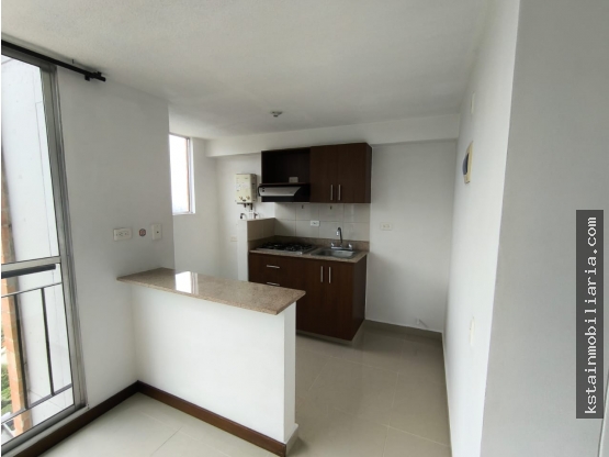 tiene un área de 43 mts aprox, cuenta con 2 habitaciones, 1 baño, cocina integral, red de gas, calentador, sala comedor, ventanal, zona de ropas y parqueadero doble lineal para moto.