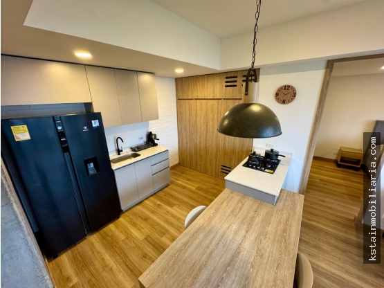 tiene un área de 64.72 mtrs aprox, distribuidos en 1 habitación, 2 baños, cocina integral, red de gas, calentador, sala comedor, zona de ropas, cuarto útil y parqueadero privado.