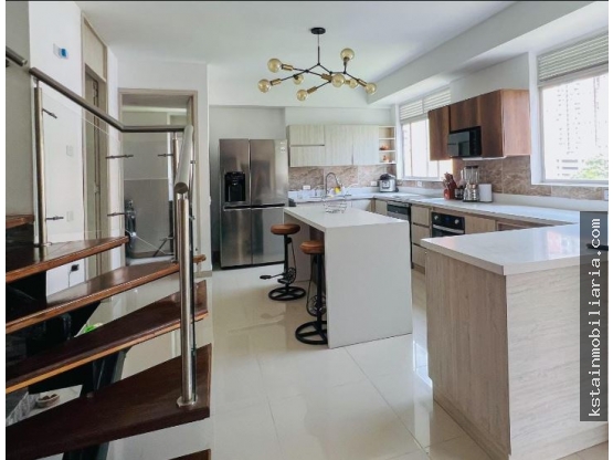 tiene un área de 360 mtrs aprox, distribuidos en 5 habitaciones, 7 baños, cocina integral, red de gas, calentador, sala comedor, balcón, zona de ropas, 2 terrazas y 2 parqueaderos privados.