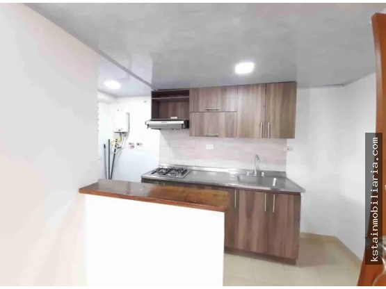 tiene un área de 57 mts aprox, cuenta con 3 habitaciones con closet, 2 baños, cocina integral abierta, red de gas, calentador, sala comedor, zona de ropas y parqueadero sencillo.